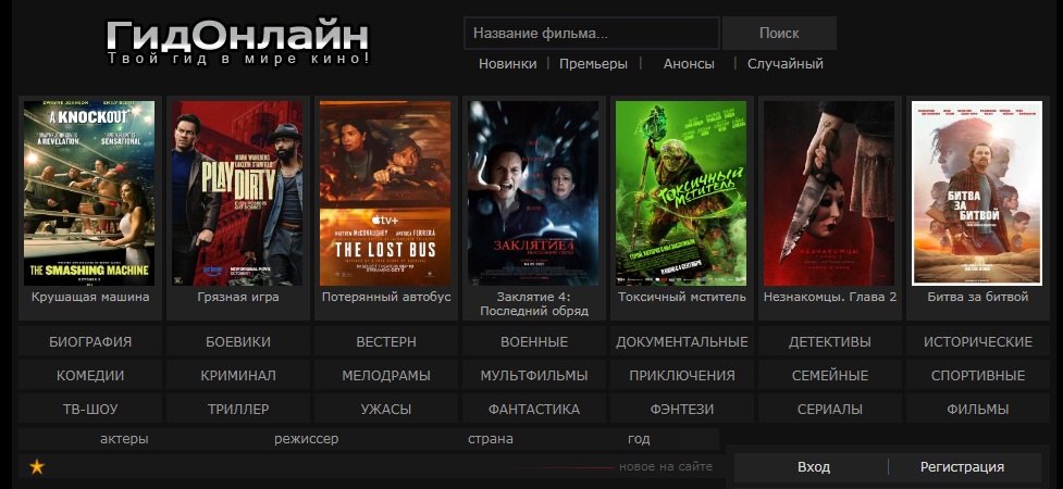 ГидОнлайн — это онлайн-кинотеатр с минималистичным дизайном. Сайт загружается быстро, без лишних баннеров или всплывающих окон. Главная страница встречает вас топ-новинками: свежие релизы, популярные сериалы и подборки по жанрам. Навигация интуитивна — меню разделено на категории: фильмы, сериалы, мультфильмы, аниме. Есть поиск по названию, году или актеру, что упрощает нахождение контента.